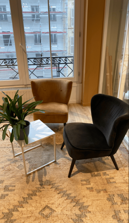 Fauteuil espace détente en velour rouge avec pieds crayons noir. Attention, bon état général mais pied tremblant sur une d'entre elles (voir photo).