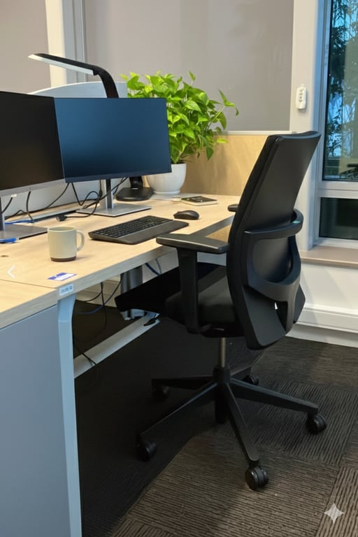 Le fauteuil de bureau Haworth Comforto 89 est un fauteuil ergonomique avec des accoudoirs. Il offre un soutien lombaire et possède un réglage d'inclinaison et de force d'appui. L'assise est réglable en profondeur pour plus de confort. Assise est en tissu noir, les pieds en métal noir et les accoudoirs en plastique noir. Les dimensions du fauteuil sont : longueur 63.0cm, largeur 55.0cm. Les accoudoirs ont une hauteur, une profondeur et une largeur réglables.
