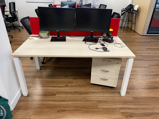 Avec des dimensions optimales de 160 cm de largeur, 80 cm de profondeur, et 74 cm de hauteur, ce bureau est idéal pour tout espace de travail, qu'il soit à domicile ou en entreprise. Bien que ce modèle ne dispose pas de roulettes, il reste facilement transportable et adaptable à divers environnements professionnels.