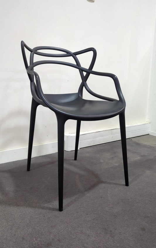 Cette chaise Kartell Milano est entièrement conçue en plastique noir, offrant un look moderne et élégant. Elle possède des accoudoirs pour plus de confort. Ses dimensions sont de 55 cm de longueur, 55 cm de largeur, et 83 cm de hauteur avec une hauteur d'assise de 49 cm.
