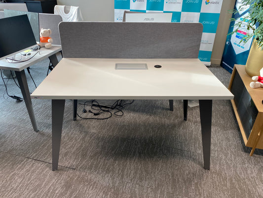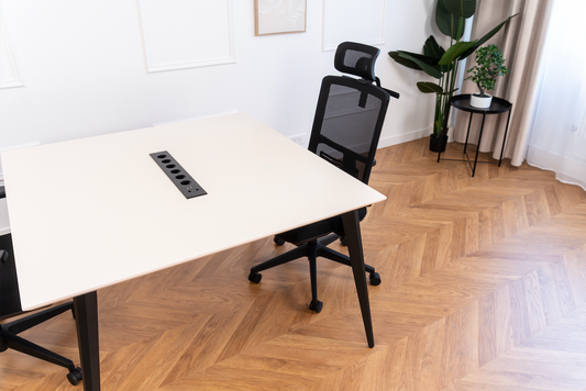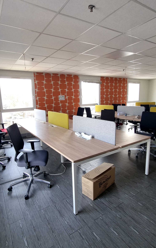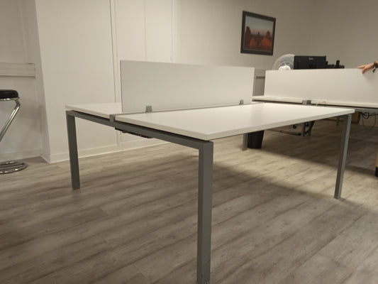 Ce bureau multiposte offre deux espaces de travail confortables et efficaces grâce à sa longueur et largeur de 120 cm. Le plateau est en bois de couleur blanche, apportant une touche moderne et épurée à votre espace de travail. Les pieds sont en métal noir, assurant une grande stabilité et un contraste élégant. Équipé d'un système de passage câbles électrique, ce bureau est idéal pour un environnement professionnel bien organisé.