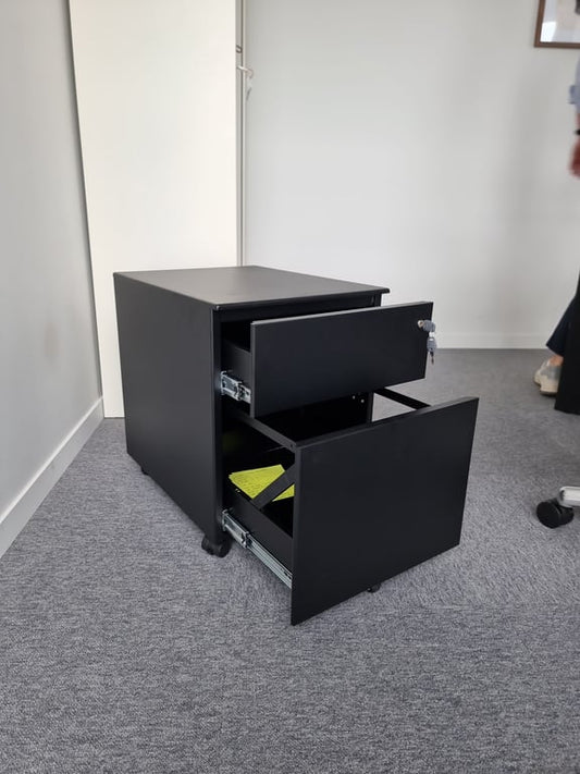 Ce caisson de rangement est idéal pour organiser vos espaces. Conçu en métal, il est à la fois robuste et élégant avec une finition blanche. Équipé de deux tiroirs, il offre un espace de rangement pratique et spacieux. Monté sur roulettes, il est facile à déplacer selon vos besoins. Il dispose d'une fermeture à clé, bien que la présence des clés ne soit pas garantie. Ses dimensions compactes de 50 cm de hauteur, 32 cm de largeur et 53 cm de profondeur en font un meuble adapté à divers environnements. Ce caisson ne contient pas de cloisons et est parfait pour un usage quotidien.