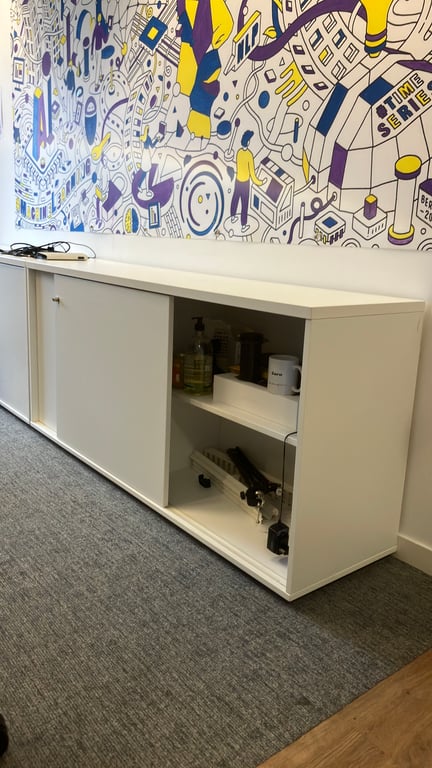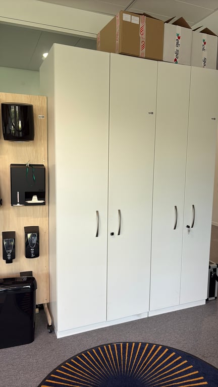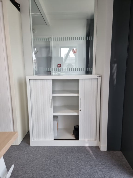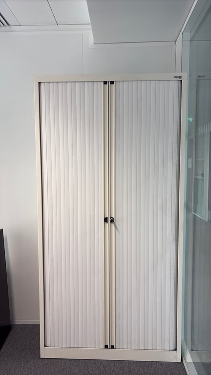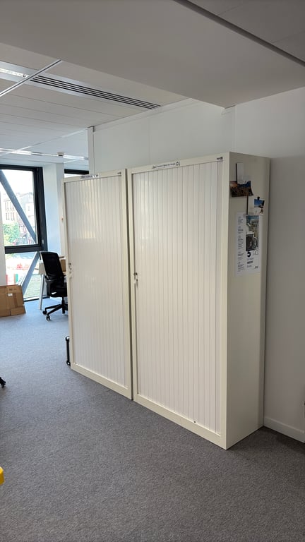 Cette armoire basse en métal offre une solution de rangement pratique et moderne. Elle mesure 197 cm de hauteur, 100 cm de largeur et 45 cm de profondeur. Équipée de quatre étagères, elle offre amplement d'espace pour organiser vos affaires. Les portes de l'armoire sont en plastique blanc, de type rideaux, ce qui facilite l'accès rapide à vos objets tout en assurant un gain de place. La fermeture se fait par clé, bien que la présence des clés ne soit pas garantie. Essentielle pour le rangement, cette armoire ne possède pas de roulettes, assurant ainsi une stabilité optimale. Sa structure métallique blanche assure une durabilité et une élégance discrète, parfaite pour un bureau ou un espace professionnel.