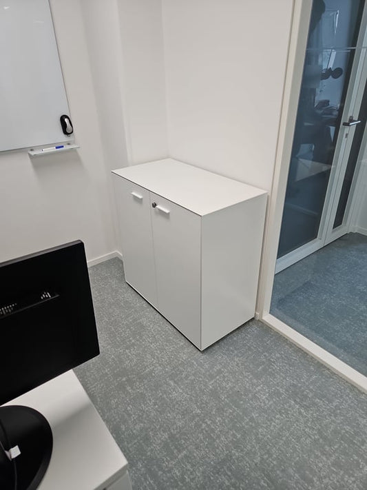 Armoire basse en mélaminé avec portes battantes