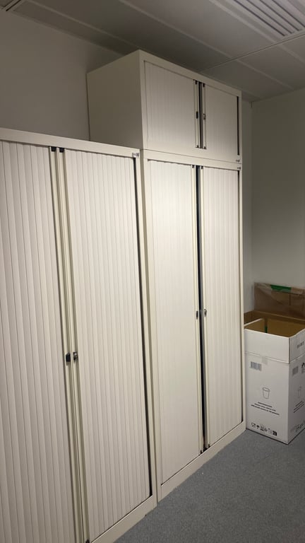 Cette armoire basse en métal offre une solution de rangement pratique et moderne. Elle mesure 197 cm de hauteur, 100 cm de largeur et 45 cm de profondeur. Équipée de quatre étagères, elle offre amplement d'espace pour organiser vos affaires. Les portes de l'armoire sont en plastique blanc, de type rideaux, ce qui facilite l'accès rapide à vos objets tout en assurant un gain de place. La fermeture se fait par clé, bien que la présence des clés ne soit pas garantie. Essentielle pour le rangement, cette armoire ne possède pas de roulettes, assurant ainsi une stabilité optimale. Sa structure métallique blanche assure une durabilité et une élégance discrète, parfaite pour un bureau ou un espace professionnel.