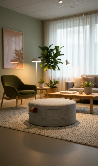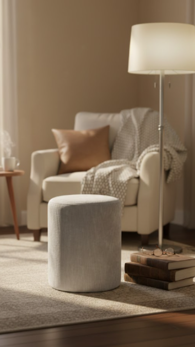 Pouf en velours gris clair