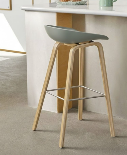 Hay - About A Stool AAS42 - Chaise haute - About A Stool AAS42 en plastique gris et pieds en bois