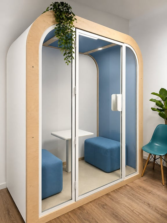 Choisis selon la capacité (nombre de personnes), l’indice d’isolation en décibels (dB), la ventilation, l’éclairage et l’usage (visio, réunion, travail solo).
