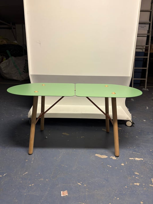 Cette table basse rectangulaire se distingue par son design élégant et ses matériaux de qualité. La table est constituée de métal pour les deux éléments principaux : le plateau et les pieds. Le plateau arbore une couleur unique 'Sushi' avec un ton vert, tandis que les pieds sont dans une teinte crémeuse. Avec ses dimensions de 51 cm de hauteur, 113 cm de largeur, et 53 cm de profondeur, elle est parfaitement proportionnée pour s'intégrer dans divers espaces de vie. Conçue en une seule pièce, cette table allie fonctionnalité et esthétique pour compléter votre intérieur.
