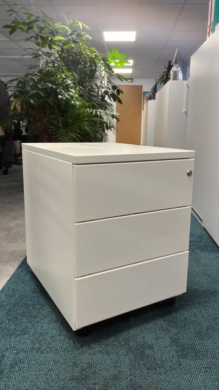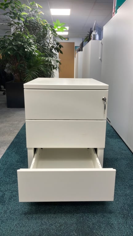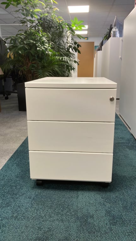 Caisson 3 tiroirs en métal blanc avec roulettes - Fermeture à clé