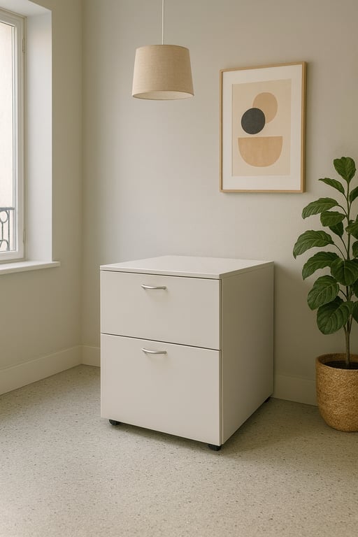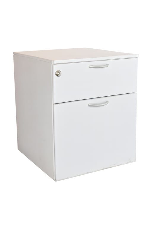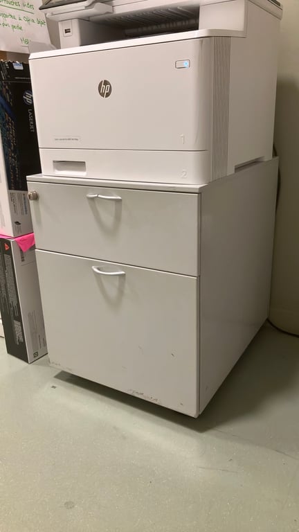 Ce caisson de rangement est équipé de roulettes pour une mobilité facile, ce qui le rend pratique pour un usage quotidien dans n'importe quel espace de travail. Il possède deux tiroirs spacieux pour le rangement de vos documents ou autres objets. Construit en métal de couleur gris clair, il est robuste et durable. La fermeture à clé assure la sécurité de vos affaires, bien que la présence des clés ne soit pas garantie. Ses dimensions sont de 54 cm de hauteur, 42 cm de largeur et 52 cm de profondeur, ce qui lui permet de s'intégrer facilement sous un bureau ou dans un coin de la pièce. Ce mobilier est sans cloisons internes, optimisant ainsi l'espace de rangement disponible.