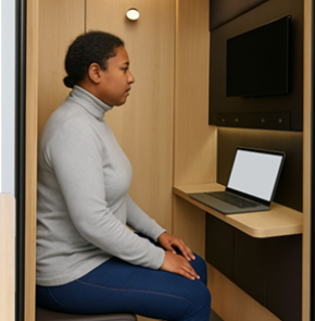 Côté design, la cabine arbore une structure et un revêtement en bois avec une élégante teinte Bois (#9D7153), garantissant un look naturel et harmonieux avec son environnement. De plus, elle est équipée d'une banquette indépendante pour le mobilier inclus, et d'une tablette fixe pour y déposer vos objets personnels.