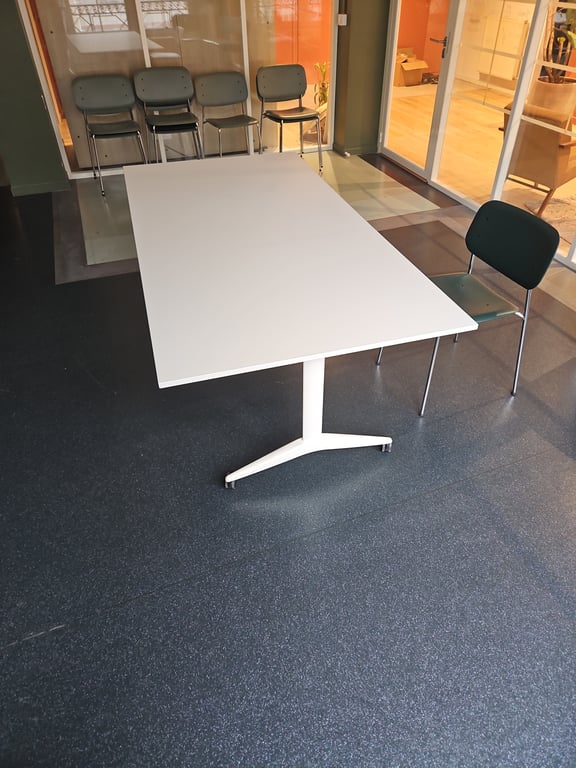 Cette table de réunion rectangulaire est conçue pour allier fonctionnalité et design moderne. Avec des dimensions généreuses de 200 cm de largeur, 100 cm de profondeur et 75 cm de hauteur, elle offre un espace de travail convivial et spacieux. Le plateau de la table est fabriqué en mélaminé, un matériau reconnu pour sa résistance et sa facilité d'entretien, et est disponible en coloris blanc. Les pieds en métal, également de couleur blanche, assurent une stabilité optimale tout en ajoutant une touche contemporaine à l'ensemble. Idéale pour les réunions en entreprise, elle s'intègre parfaitement à tout environnement professionnel.